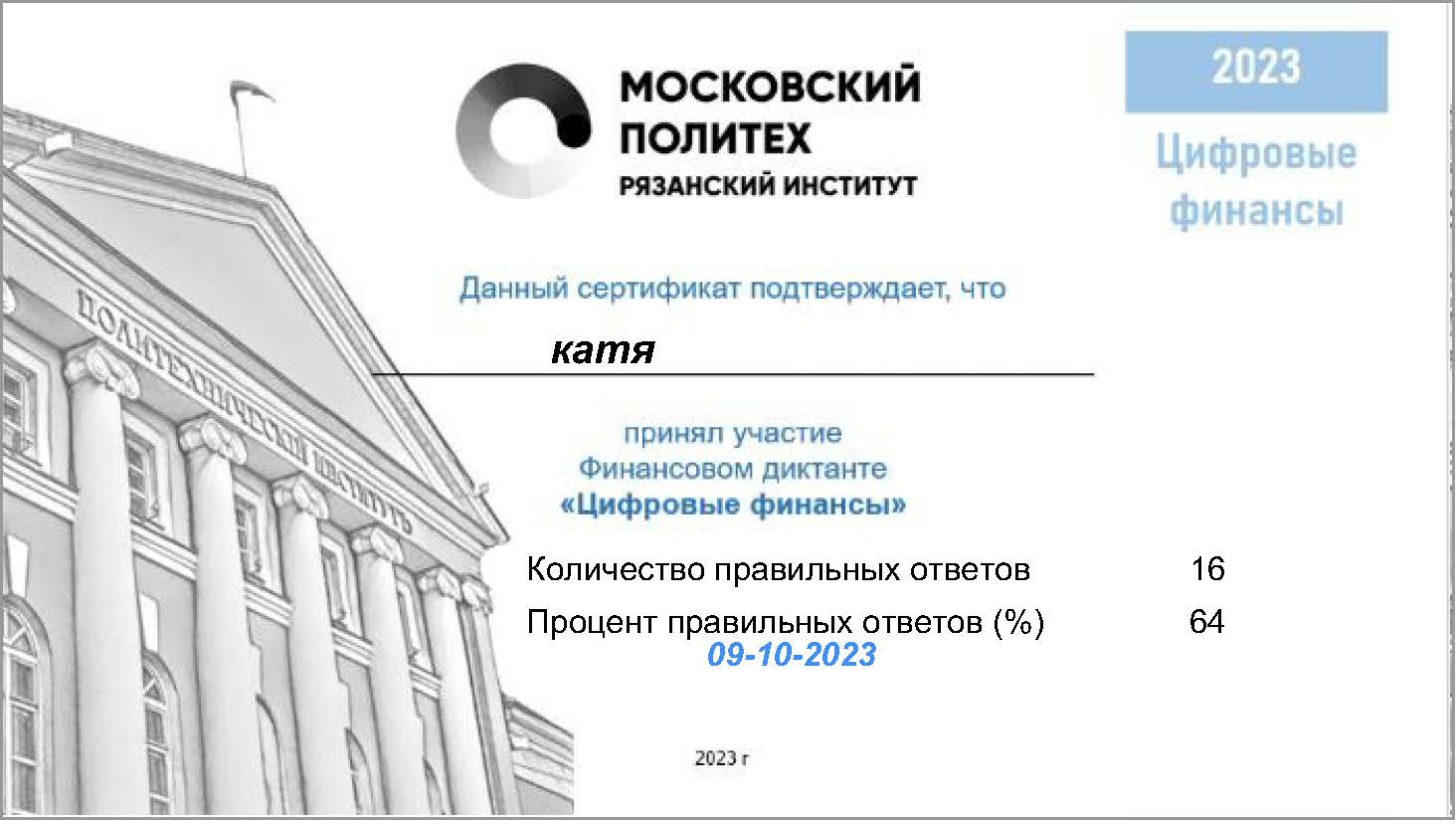 certificateфинзачет